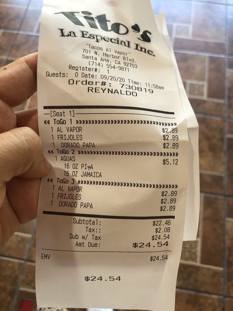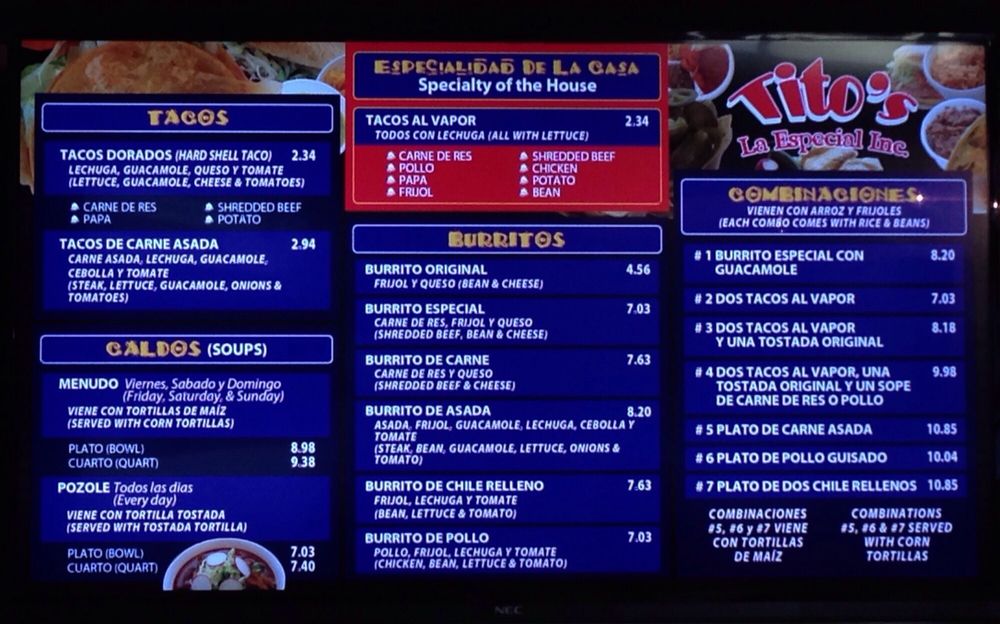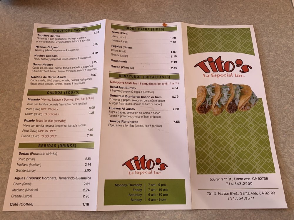 Tito's La Especial Menu